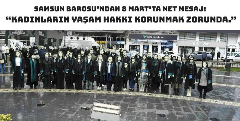 (SAMSUN) – 8 Mart Dünya Emekçi Kadınlar Günü nedeniyle Samsun Barosu Kadın Hakları Komisyonu tarafından Samsun’daki Atatürk Anıtı önünde basın açıklaması yapıldı. Komisyon adına açıklamayı Avukat Hale Günaydın okudu. Çok sayıda kadın avukatın katıldığı açıklamaya çevrede bulunan yurttaşlar da alkışlarla destek verdi.