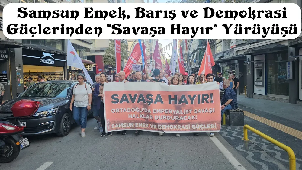 (SAMSUN)- Samsun Emek, Barı ve Demokrasi güçleri saat 19.00’da Öğretmenevi önünde toplanarak, Çiftlik caddesi boyunca sloganlar atarak Orta Doğu’daki emperyalist barbarlığı halklar durduracağına ilişkin her zamanki basın açıklaması yaptıkları yere Akbank Çiftlik şubesi önüne kadar yürüdüler.