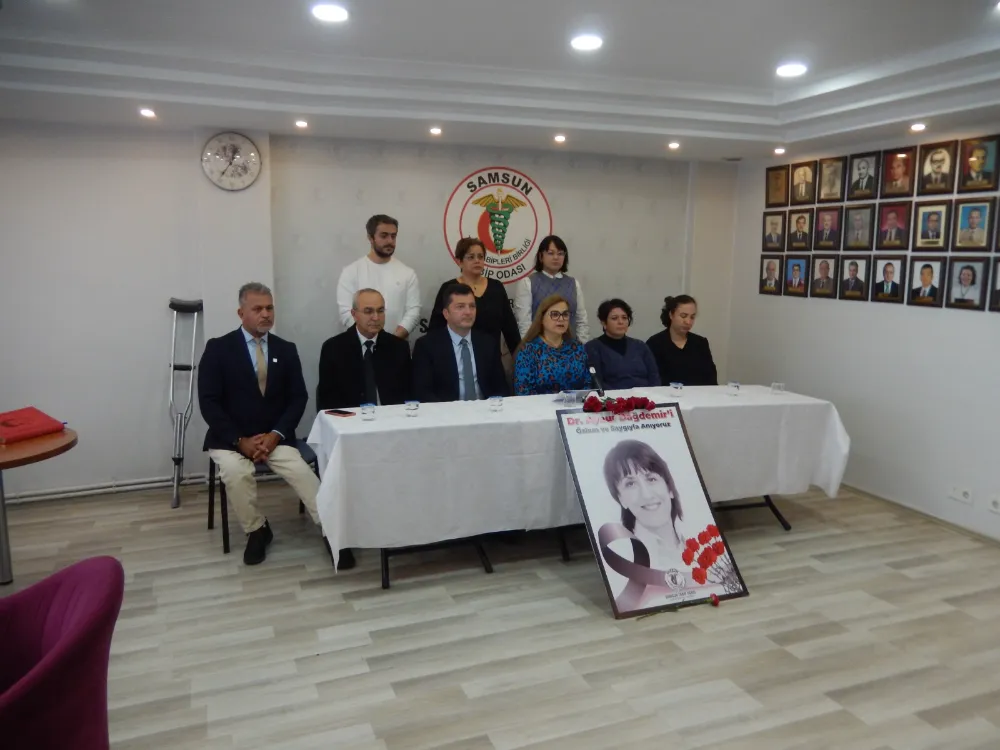 (SAMSUN)- Samsun’da özel bir hastanede Kadın Hastalıkları ve doğum uzmanı olarak çalışırken sekreterinin eski eşini korurken saldırıya uğramış ve hayatını kaybeden Opr.Dr. Aynur Dağdemir’in ölümünün 9. Yılında mezarı başında anıldıktan sonra Tabip odasında bir basın açıklaması yapıldı.