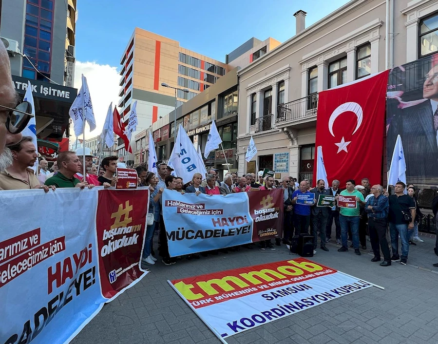 TMMOB Samsun İKK adına konuşmasını sürdüren İKK sekreteri Veli Kebapçı şu ifadelerle basın açıklamasına başladı. “19 Eylül 1979 tarihinde TMMOB’nin çağrısıyla gerçekleştirilen iş bırakma eylemi, maden ocaklarından enerji santrallerine, fabrikalardan şantiyelere, kamu kurumlarından limanlara kadar pek çok iş yerinde üretimin durmasını, teknik elemanların yaşadıkları sorunlara dikkat çekilmesi sağlamıştı. Bizler için 19 Eylül iş bırakma eylemi, ülkesi için düşünen, planlayan, üreten mühendis, mimar ve şehir plancılarının kendi öz güçlerinin farkına vardığı tarihtir. 19 Eylül’ün mirasını yaşatmak için ilan ettiğimiz TMMOB Mühendis, Mimar ve Şehir Plancıları Dayanışma Günümüz kutlu olsun! Maalesef dayanışma günümüze, coşkulu kutlamalar yerine, yaşadığımız büyük sorunlar damga vuruyor. İçerisinde bulunduğumuz mesleki, ekonomik ve toplumsal koşullar bizlere “boşuna mı okuduk” sorusunu sorduruyor” şeklinde konuştu.