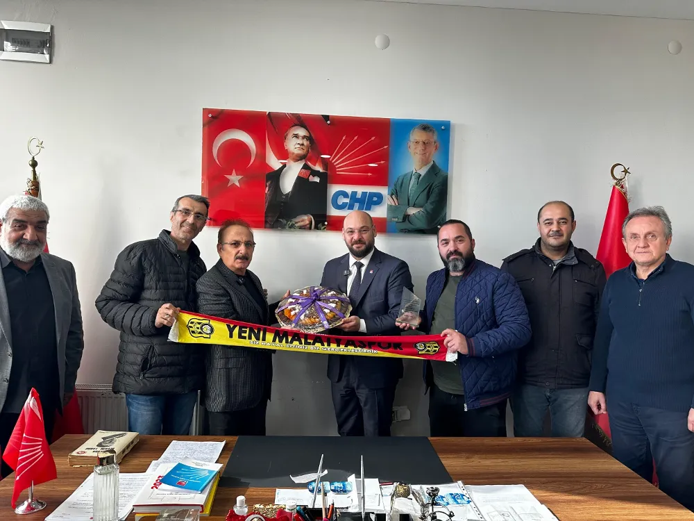 Depremin ardından Samsun’a gelen ilk kafileyle gelen Ekrem Arı, Murat Yücel ve Tamer Demirağ Otel 1919’un sahibi Serhat Türkel’i başkanlığını yaptığı CHP Atakum ilçe teşkilatında ziyaret ederek Fahri Malatyalı beratını ve Yeni Malatya Spor kaşkoluyla çeşitli hediyeler takdim ettiler.