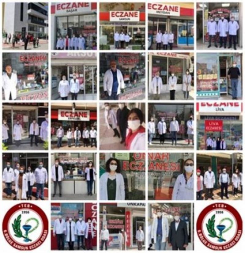 Yaşanılan olağanüstü koşullardan dolayı sosyal medya üzerinden yürütülecek olan Eczacılık Haftasında; Samsun 6. Bölge Eczacı Odası haftaya eczaneleri önünde saygı duruşuyla başladılar.