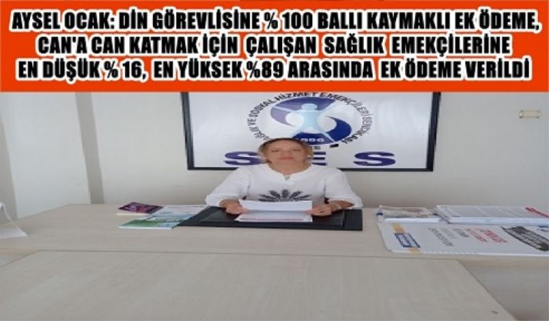 Aysel Ocak açıklamasına şöyle devam etti. “Sağlık emekçilerinin bu zor koşullarda çalışmalarını izleyen Sağlık Bakanı Fahrettin KOCA ‘Sağlık çalışanlarımıza; minnettarız hakları ödenmez’ demiş ve yine ödememiştir. Son yayınlanan Ek ödeme genelgesi ile bizleri ne kadar anladığı ve nasıl empati kurduğunu üzülerek gördük. Sağlık çalışanlarına üç ay tavandan ek ödeme yapılacağı açıklanmış toplumda çok para alıyorlar algısı yaratılmıştır. Genelgeyi incelediğimizde ek ödeme kat sayı oranları, sağlık hizmetleri sınıfında en düşük oranın %16 ,en yüksek oranın %89 arasında olduğu, din hizmetleri görevlilerine ise %100 ek ödeme kat sayı oranı uygulandığı görülmüştür. Bu oranlar bürüt maaş üzerinden hesaplandığı için Covid-19 çalışma alanı dışında kalanlar çok az ek ödeme alabilecek yada hiç alamayacaktır” diye açıklamada bulundu.