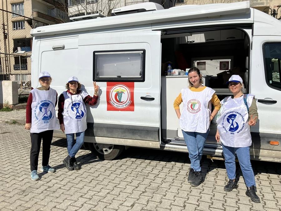 SES Samsun Şube başkanı Aysel Ocak, 3 Mart 2023 tarihinden 8 Mart 2023 tarihine kadar depremin derinden vurduğu illerden Hatay’ın ilçelerinde sağlık hizmeti sunmak için ekip olarak gittiler.