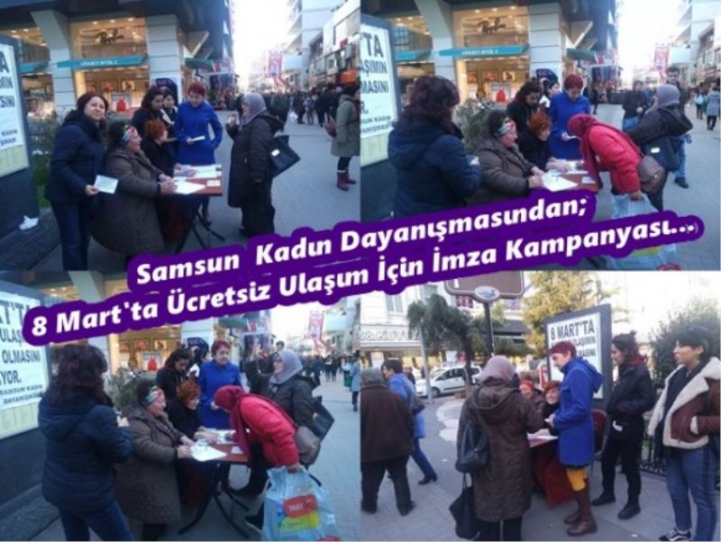 Biz Samsun Kadın Dayanışması olarak bu 8 Mart'a giderken, bir imza kampanyası başlattık. Bu kampanyada ki talebimiz, 8 Mart Günü Samsun'da Ulaşımın Kadınlara ücretsiz olması. Bu konuyla ilgili olarak iki gündür imza kampanyamız devam etmektedir. Birincisini dün Süleymaniye geçidinde yaptık bugün de Mecidiye girişinde yapıyoruz. 2 gündür gerçekten de ilginin çok yoğun olduğunu gördük. 8 Mart günü tüm dünya da kadınlar gasp edilen hakları için, kadın cinayetlerine karşı, şiddete, tacize ve tecavüze karşı sokaklardalar. Bizde 8 Mart'a giderken böyle bir kampanya başlattık. Ayrıca Samsun Kadın Dayanışması olarak biz bu topladığımız imzaları SBB (Samsun Büyükşehir Belediyesine) teslim edeceğiz. Bize verilecek olan cevabıda tüm kamuoyuyla da mutlaka paylaşacağız. Bir de 8 Mart Günü Samsun'da yaşayan tüm kadınları 8 Mart Dünya Emekçi Kadınlar Günü yürüyüşümüze davet ediyoruz. 8 Mart 2020 Pazar günü saat 17.00'de Öğretmenevi önünde toplanacağız. Ve taleplerimizi yüryüşümüzle isyanımızla dile getireceğiz' dedi.