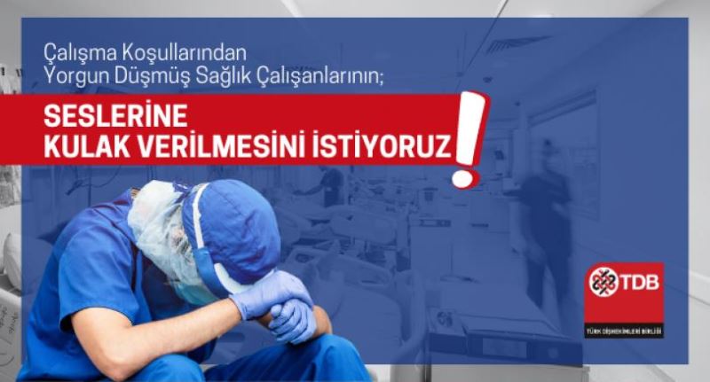 TDB (Türk Dişhekimleri Birliği) sağlık emekçlerinin seslerine herkes kulaklarını tıkadığını, kimsenin onları görmezden gelmesinin doğru olmadığı ile ilgili bir yazı basın açıklaması yaptı.