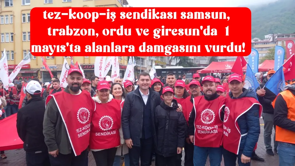 Tez-Koop-İş Sendikası Samsun Şube başkanı Tarık Sayın; Trabzon, Giresun, Ordu ve Samsun illerinde alanlarda olduklarını tüm illerde rengarenk bir tablo içinde işçilerin taleplerinin haykırıldığı 1 Mayıs alanlarında; işçiler renkli bir tablo oluşturmuştur. 1 Mayıs göstermiştir ki; dünyada iki ana sınıf vardır. İşçiler ve patronlar. Patronlar sınıfı, dünyanın her ülkesinde işçi sınıfının emek gücünü sömürerek zenginleşmektedir. İşçi sınıfı her ülkede karın tokluğuna, çalışma saatleri uzatılarak patronlar için çalışmaktadır. Patronlar sınıfın bütün tarihi, işçi sınıfının sömürüsü üzerine inşa edilmiştir. Bu sömürü düzeni yıkılana kadar, “ gecelerinde aç yatılmayan” günleri yaratana kadar mücadelenin devam edeceğini dile getirmiştir. Sayın; Dünya işçilerinin Emek Dayanışma Bayramını kutlayarak sözlerini sonlandırmıştır.