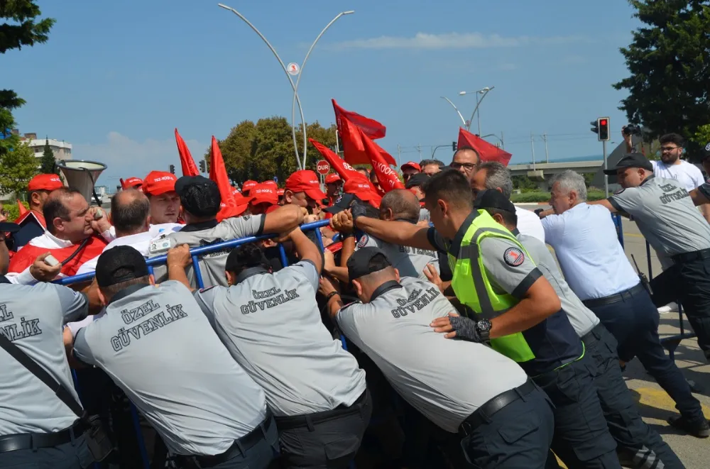 OMÜ’nün güvenlik kuvvetleriyle polisler rektörlük binasına yürümek isteyen işçilere sert bir şekilde müdahale ederek çıkan arbedede barikatları aşan işçiler yaka paça barikatların dışına çıkarttılar.