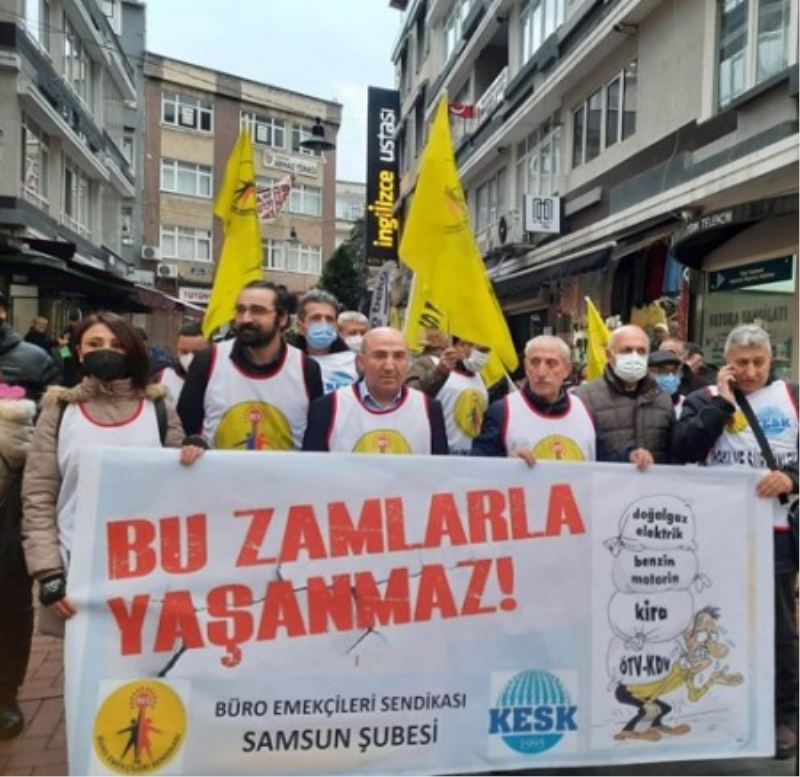 KESK’in iş kollarından BES (Büro Emekçileri Sendikası) Samsun Şube Başkanı Yılmaz Tuluk’ta, Süleymaniye geçidinde kamuoyuyla birlikte gelen zamları protesto etmek için bir araya geldiler.