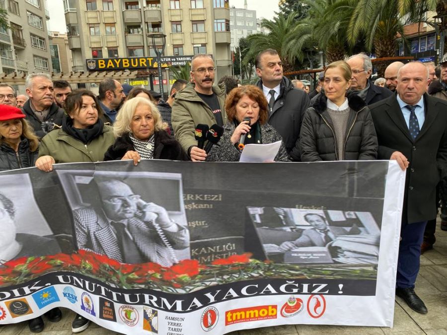 31 Ocak 1990 akşam saatlerinde evinin önünde iki kahpe kurşunla katledilen Kurucu Genel Başkanımız Prof. Dr. Muammer Aksoy'un ve 24 Ocak 1993 sabahı otomobiline tuzaklanan bomba ile paramparça edilen Kalpaksız Kuvvacımız Uğur Mumcu'nun yok edilmeleri, emperyalizmin ilk halka seri siyasi cinayetler tuzağının ikinci halkasının başat kilometre taşlarıdır. İlk halka seri cinayetlerle; demokrasiyi katledip özgürlükçü 1961 Anayasası yerine getirdiği yasakçı 1982 Anayasası ve antidemokratik darbe yasaları ile örgütlü toplumu, özerk üniversiteyi, özgür kültür ve sanat iklimini dinamitleyen, ABD'nin "Bizim oğlanlar yaptı" dediği 12 Eylül 1980 Faşist Darbesi'ne zemin oluşturulmuş, toplumsal meşruiyet sağlanmıştır. İkinci halka ile de ülkemiz 2000'li yılların Emperyal güdümlü Siyasal İslam çıkmazına sokulmuştur. Sistematik bir şekilde sürdürülen aydın kıyımı; aslında bir "meydanı boşaltma" operasyonuydu ve gelecekte yani bugün ülkemizde sahnelenecek oyunların da habercisiydi” diye konuştu.