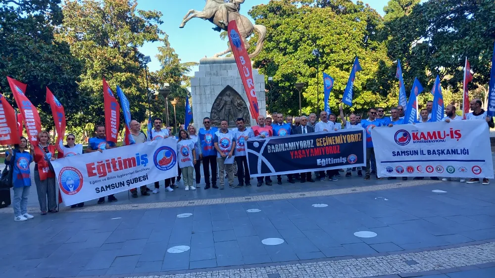 Eğitim-İş Samsun şube başkanı Volkan Erken; “Kadrolaşma, Mobbing, haksız soruşturmalar, eğitimde kol gezmekte, birçok mesleki hakkımız da sistemsel olarak gasp edilmektedir. Bıçak kemiğe dayanmakla kalmamış, kesmeye başlamıştır! Bugün bunun kanıtı olan utanç karneleriyle, maaş bordrolarımızla karşınızdayız! Başöğretmen’in gelecek nesilleri emanet edecek kadar güvendiği eğitim neferlerine reva görülen sefalet budur! Eğitimi önem sırasında sonlara iten çağdışı yönetim anlayışının yol açtığı rezil tablo budur! Ülkenin her alanını sarmalayan gerici, antidemokratik tavır, eğitimi de sarmalamıştır. Mesleki itibarımız, demokratik hak ve taleplerimiz, çocuklarımızın laik, bilimsel, demokratik, parasız ve eşit eğitim hakkı için mücadelemiz ve sesimizi büyütüyoruz. Mesleğimizin onuruna ve geleceğimiz olan çocuklarımızın eğitim hakkına sahip çıkıyoruz. Dernek ve vakıf maskesi takan gerici yapılarla imzalanan protokoller; eğitim bilimine, pedagojiye, laik ve bilimsel eğitime taban tabana zıt, eğitim ve öğretim birliğine ve yasalarımıza açıkça aykırı olan ÇEDES ve benzeri projelere karşı “çocukları korumak vatanı korumaktır” şiarıyla hareket etmeye devam edeceğiz. Eğitime ve çocuklarımıza sahip çıkacağız. Eğitim-İş olarak altını çiziyoruz: Buna boyun eğmeyeceğiz! İnsani çalışma şartları ve insani ücretlere kavuşana kadar eylemlilik sürecimizi giderek artırıyoruz. 4 Kasım’da Konya ve Kocaeli, 11 Kasım’da Ordu ve Aydın, 18 Kasım’da Tekirdağ ve Van merkezli bölge eylemleri düzenleyeceğiz. Öğretmenler Günü’nü ise kutlamıyoruz ve riyakarca kutlamaları kabul etmiyoruz. O gün üretimden gelen gücümüzü kullanarak iş bırakacak ve Başöğretmenimize şükranlarımızı sunacağız. 25 Kasım’da Başkent’te düzenleyeceğimiz büyük buluşmamızda ise Fakir Baykurt’un yoldaşları olarak el açmayacak, ders vereceğiz! Haklıyız, kazanacağız” dedi.