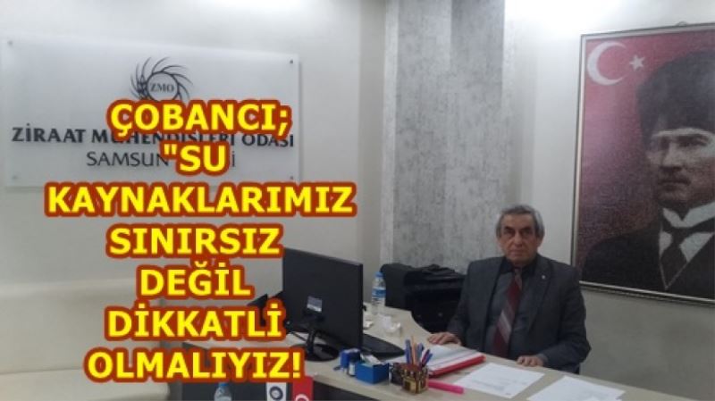 21 Mart Dünya Su Gününde su kaynaklarımızın dikkatli ve verimli kullanılabilmesi hususunda Samsun ZMO (Ziraat Mühendisleri Odası) Başkanı Hasan Çobancı bir açıklamada bulundu.