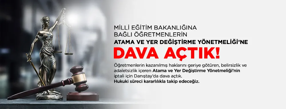 Öğretmenin “görev yeri” tanımını muğlaklaştıran düzenlemelerin de yer aldığı yönetmeliğin iptali için Danıştay nezdinde dava açıldığı duyuruldu. Eğitim-İş Samsun Şube Başkanı Onur Gündüz, Millî Eğitim Bakanlığı’nı bu gerçekleri görmezden gelen düzenlemelerini yeniden gözden geçirmeye davet ettiklerini belirterek, hukuki süreci sonuna kadar takip edeceklerini ve süreçte mağduriyet yaşayan öğretmenlerin yanında olmaya devam edeceklerini ilan etti.