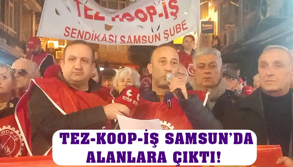 Tez-Koop-İş Sendikası Samsun şubesi dün akşam saat 19’da Samsun’un İlkadım ilçesinde kalabalık bir kitleyle sendika şubesinden basın açıklaması yapacakları alana kadar sloganlar atarak yürüdüler.