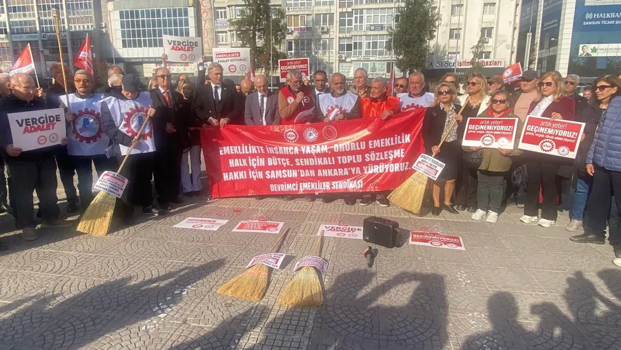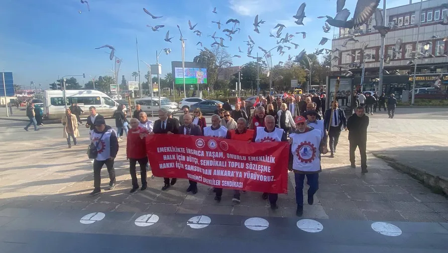 Dev Emekli-Sen, 6 Aralık’taki Ankara mitingi öncesinde Samsun’da alanlara çıktı. Genel Sekreter Fikri Kalender’in katılımıyla Atatürk Anıtı önünde toplanan emekliler, sloganlarla Cumhuriyet Meydanı’na yürüdü. Yürüyüş boyunca “insanca yaşam” talebi ve sefalet düzenine öfke öne çıktı.