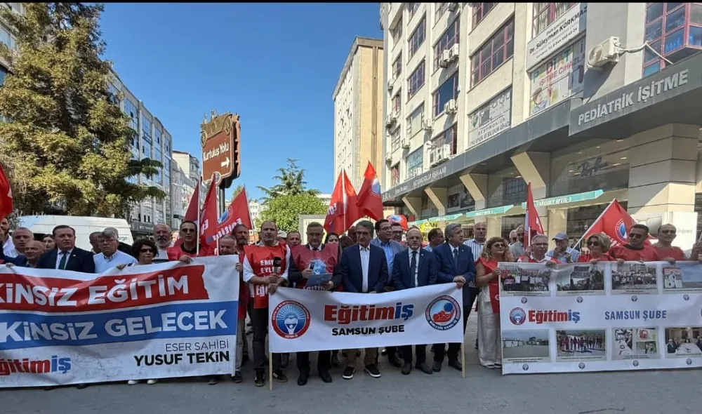 (SAMSUN)- Eğitim-İş Samsun şubesi dün akşamüzeri Gazi Müzesi önünde saat 18’de CHP Genel başkan yardımcılarından Yalçın Karatepe, Yankı Bağcıoğlu ve CHP Samsun milletvekili Murat Çan’ın katılımıyla düzenledikleri basın açıklamasında Eğitim-İş Samsun şube başkanı Onur Gündüz şöyle dedi.